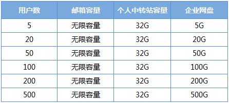 1、用戶數(shù)、郵箱容量,個人中轉(zhuǎn)站容量和企業(yè)網(wǎng)盤容量不同