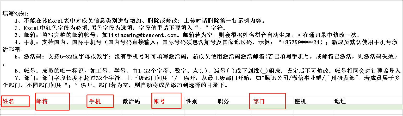 通訊錄-批量導入,下載批量導入模板,按照模板內指引填寫信息,并導入到指定部門。成功導入后選擇邀請會下發(fā)手機短信, 通知成員登錄郵箱。