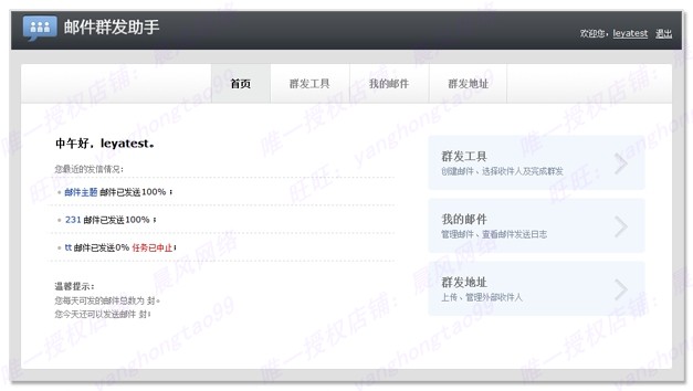 (3)專屬的郵件群發(fā)工具,不再需要擔(dān)心郵件群發(fā)受限制。群發(fā)網(wǎng)站注冊信、訂閱信、通知信等不再是難題。提供Web定制方式和Smtp發(fā)送接口,滿足不同場景的通知群發(fā)需求。